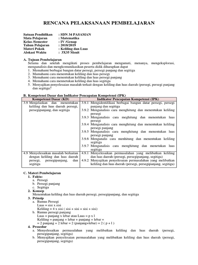 Rpp matematika kelas 4 bangun datar. Maybe you would like to learn more about one of these? We did not find results for: Check spelling or type a new query.